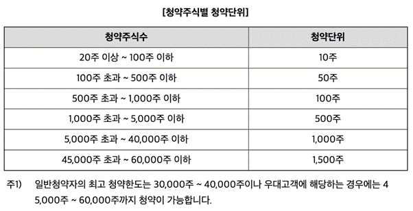 | 증권사 | 배정수량 | 청약하도 |